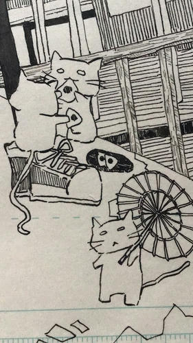 その後猫を描いての百均のマーカーで影塗ったら…。